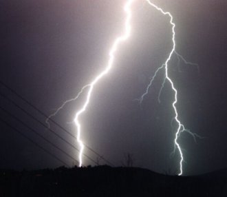 A severe storm tore through the eastern Darling Downs causing an estimated $2 million in damges to crops! The storm brought fierce winds and gold ball sized hail, leaving in its wake a damage path 4-7km long from Cecil Plains to Pitsworth and Clifton. One cotton grower said his 1500 acre crop had been complete whiped out. Strong/borderline severe storms developed in eastern parts during the late afternoon and early evening, with frequent lightning and winds gusting to 80-90km/h reported from Kallangur. The lightning photo above was taken by Andrew Maben from the Sunshine Coast during the evening, as were the ones below. Report by Ben Quinn