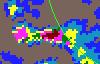 N and NE of Warwick, showed 100mm/h+ intensity for 1 hour.