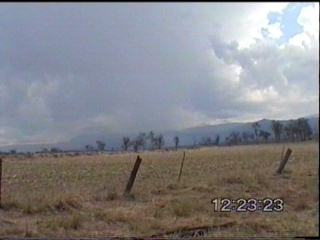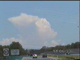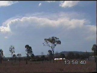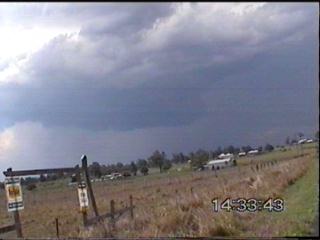 Severe Hailstorm & Supercell Chase Produces WC & Funnel!!! November 4, 2000 Saturday the 4th of November was shaping up to be yet another great day for severe thunderstorms in SE QLD! With the trough still lingering just inland, moisture from the previous two days of storms, and lack of low level cloud, it was sure to be impressive! And indeed, it didn�t disappoint! Physical LI values on this day dropped to around negative 8, and shear was ever so slightly better! By 10:30am, TCU was already popping up on the Cunningham Ranges, by 11am the first cell had anvilled out! After refueling my car, and getting my morning Ribena Berry popper from the service station, I was on my way! I decided to head for the Rosevale area. I had discovered that this village was located on the foothills of the Cunningham Ranges, the views from this area were quite good, and surprisingly for a remote area, the mobile coverage was superb! I watched the cells over the Cunningham Ranges continue to pulse, move of and dissipate, and was waiting patiently for one to move off and maintain intensify. The cells were reasonably
