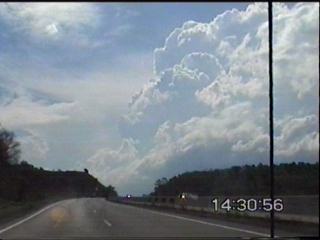 The flanking line of this cell continued to form virtually in front of me, and as the storm continued to track in a ESE-SE fashion, I continued with it. Near Minden, I stopped and watched the flanking line of the cell, the new updraft had a nice corkscrew in it! As it ascended, you could see it rotate and curl!!! It looked quite impressive (yet also slightly concerning at the time as I was virtually just 500m away from being directly under that region).