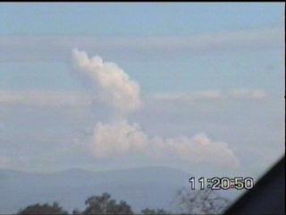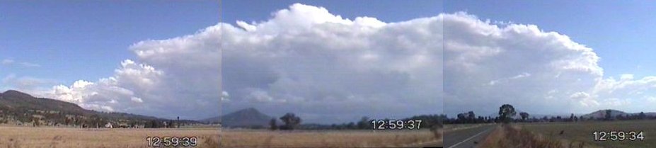 Large CJ�s developed on the ranges, some of them quite strong at first but then collapsed soon after. The sky was in its fluctuating stage, where sometimes it�d look quite spectacular and then a few minutes later it looked quite junky. It was quite cold going through Cunningham�s Gap � 14.2C at 11:30am! Surface temperatures around the ranges were around 20C just before this. About 10km west of Cunningham�s Gap we decided to stop by the side of the road and observe what was happening. The sky to the west was thickening quite quickly with mid level cloud which made us want to head east again, as the border ranges would then be more likely to fire instead of the Eastern Downs and Granite Belt (as there was too much cloud). We watched the CJ�s go up and down on the mountain, before eventually decided to head east � to the Boonah Lookout where James was.