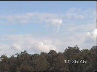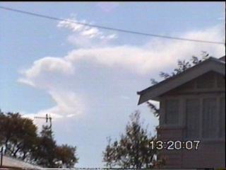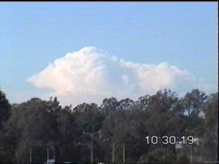 Ben arrived at my place just after 10am, and then we were off! We decided to head out to the New England Hwy, just to the west of the Cunningham Hwy to see what was lurking behind the ranges. The Cb�s out to sea were so spectacular that we had to stop several times to photograph them! We saw an unusual cloud formation near Aratula from a Cumulus Humulis, it looked like a tooth! Looking at the video footage, I was unable to explain it, but thought that it could have possibly been a funnel (funnels under Cu Hu have been sited before, but normally occur in very high sheared areas!) The low level shear was not strong, but not slack either! It backed with height a little, and the main jet in the upper levels was around 100kn.