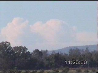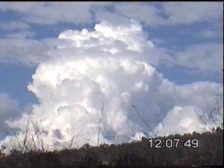 The CJ�s developed quickly into a small line of Cb�s with tops to 25,000ft � the anvil looked mid-level, but none the less I was very surprised as to how quickly the line formed! About 10km from Boonah we stopped, where we heard 2 rumbles of thunder and witnessed a CG. |