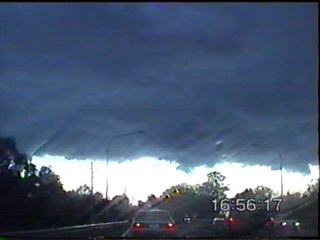 We finally got back onto the Ipswich Mwy, things were starting to look better again (of course they would, it was nearly peak hour now!) Weaving through heavy traffic on the Ipswich Mwy heading east, we saw some nice RFB�s with interesting lowerings under them. Some of them very suspicious. In order to avoid the traffic, we took the tolls (Logan and Gateway Mwy�s to get to the bayside suburbs). Again, more very nice lightning and CG�s! We got caught up in nearly torrential rain � just before the F4 splits into the F4 & F6. It was heavy enough to cause cars to pull off the side of the road and take shelter under overpasses. After this, the rain generally fluctuated between moderate and heavy.