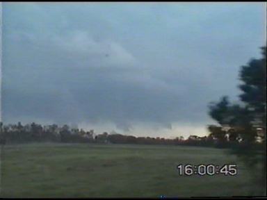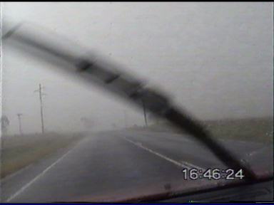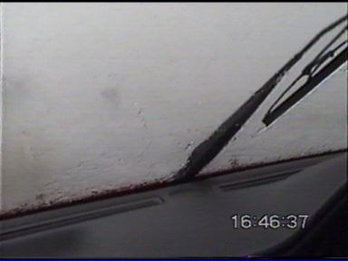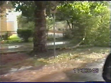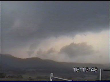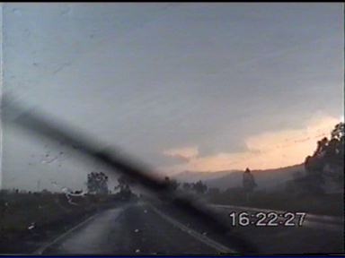 By the look of the storm, I told Paul that I thought hail was quite possible, so I wanted to try and get ahead of it and not get slammed in by hail. We tried to get ahead of it � but to no avail! We were struck by heavy rain and strong winds � branches were down on the side of the road! We continued on though! We went on for several more minutes in heavy rain, we finally started to come out of it when the drops were getting bigger. Then came the tinks of hail on the roof! Fortunately the hail remained under 1-1.5cm, so this posed no threat! Very soon we were out of the storm, and were sitting just near the rainshaft on the outflow. Very strong updrafts were going up on the NW side of the storm, it was as black as the ace of spades near it! We watch several more CG�s before deciding to head NNW with it along the New England Hwy. But again the propagation was so rapid, it would be difficult to get ahead of it. I was finding it hard to believe this was just one thunderstorm � but it was, amazing!!! We headed up towards Allora, we got a few heavy bursts of rain, but nothing major yet. We came into an area of no precipitation � it felt slightly eerie. Cars coming from the opposite direction were now starting to flash their lights at us. �Damit � police!� I thought. I was wrong. We were sitting very close to the main updraft of the storm. Only a few large drops of rain were coming down. Just up ahead a few hundred metres down the road we saw a wall of rain and what appeared to be hail. I had never seen anything quite like it before! We entered the rain and hail core, within seconds WHACK, THUMP, SMACK...WHOA!!! I quickly pulled over as near golfball sized (3-4cm) horizontal hail was being pelted on my car by ~100km/h winds! The hail was bouncing several feet off the ground as it hit. It was a total white-out, couldn't see a thing through the windscreen even though we were stationary!!! I quickly pulled out not wanting to crack a windscreen, and again � I had never experienced anything like it, as we drove back out of the rain and hail core within seconds it stopped as we approached the updraft core!!! I flashed my lights and beeped the horn at traffic coming the other way to warn them about it. We stopped just near the rain shaft. The outflow was phenomenal, it was an effort to get the door open! Probably around 35-40 knots. We decided to creep a little closer to the rain shaft. It looked like it had actually gotten closer! What had actually happened, is that it seems as if the outflow got caught up with the main inflow of the storm, and the storm had begun to collapse on itself. We experienced more 1cm hail underneath the collapsing updraft. To our NE though still looked strong, so we decided to try our luck heading NNW again trying to avoid getting struck by any large hail. We succeeded in doing so! Not without dodging trees that had been blown over and across the highway, and lots of branches down too in some areas too. A quick visit to Allora indicated it had been peppered by large hail to near golf ball size and strong winds that brought down powerlines in the main street!