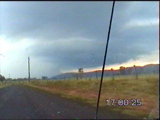 The main core was still to the west, and it was giving out a CG every 5-10 seconds! So it was quite impressive to watch! I ran out of �2WDable� dirt roads (they were getting far too soft), so I had to head back onto sealed roads before the storm moved over. I went through the edge of the storm and got some moderate rain. Not much, but it would have been much heavier to my west!