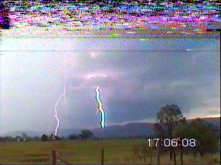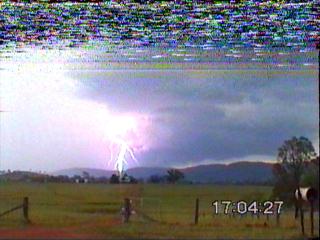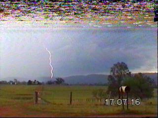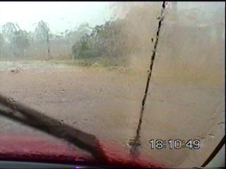 I saw some more storms developing to the SSE of Gatton. I headed towards Laidley and decided to head further south to Mulgowie to get closer to them. Just outside of Mulgowie I saw an awesome CG hit between me and the town, it was about 600-700m away. This was the first time I had ever realised how close <1km strikes are. As I got to the town 30 seconds later and thought �I�ve already passed where that CG struck!.� Unfortunately the storms remained featureless, and I got caught up in some torrential rain. So heavy in fact, I was driving along and there was a small creek that had flowed across the road, however I didn�t see it! I was probably driving faster then I should have been (70km/h), and I ploughed straight into the creek at 70km/h! The water was about one and a half foot high over the road. The damage had already been done though, I had my thermometer sensor ripped off the bottom of my car, lost one of my hubcaps and my number plate was severely bent. I had stopped to let the breaks dry, and I continued on slowly, but then pulled over to try and work out if there was an alternative route back home. Unfortunately, there was only one way in and one way out. With slow moving storms I knew that I could potentially be stuck here all night if I didn�t go back the way I came, and I didn�t have any mobile coverage and the last thing I wanted to do was worry people. So I did something very stupid, and went through the flooded creek again. The water had now risen to about two feet (but I didn�t notice this until halfway through the floodway), I could feel the drag of the water on the car and it was a rather unsettling experience! The water was rushing nearly over the bonnet, but fortunately I was through the deepest part very quickly. Certainly a lesson learnt each time, and I�ll definitely be much more careful going through heavy rain on deserted country roads in future, in particular if I�ve never gone through the section before! I drove back home, seeing occasional lightning as the storms died out a little, but the storms over the Mulgowie area still persisted for many more hours! It was near my parents� farm, and they received 79mm in approximately an hour! Still, besides the